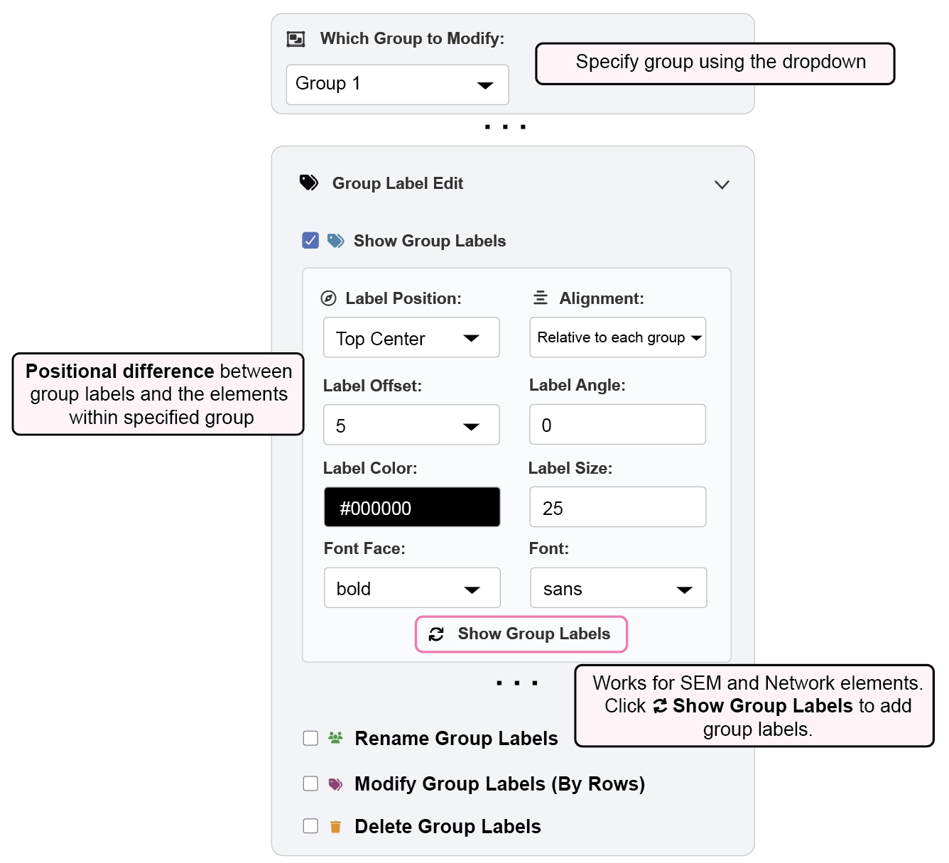 lavaan = TRUE) and network elements (network = TRUE)Click Show Group Labels to add or update group labels on your diagrams.