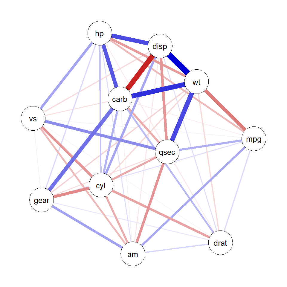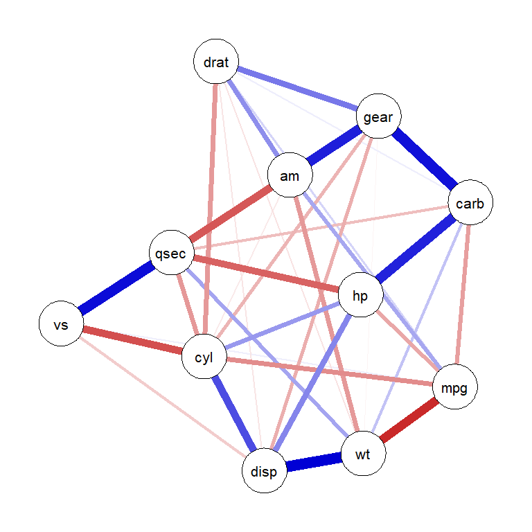 # Create correlation network from mtcars data