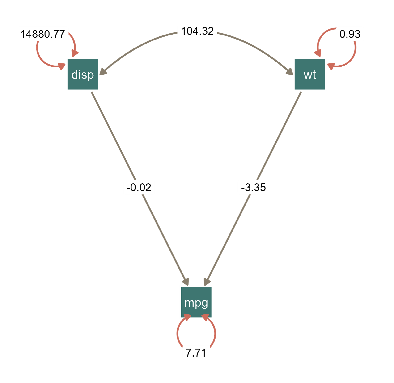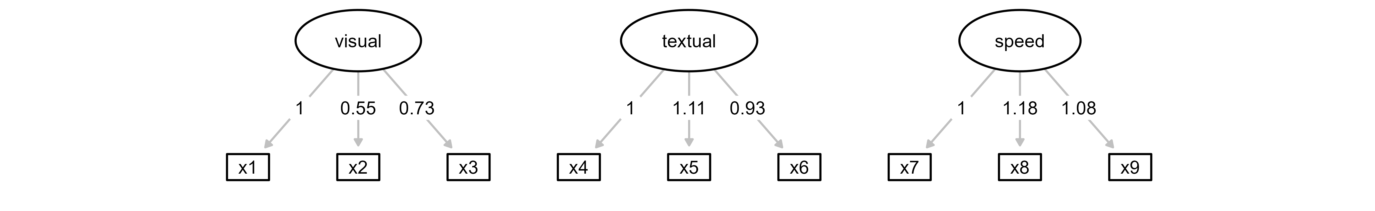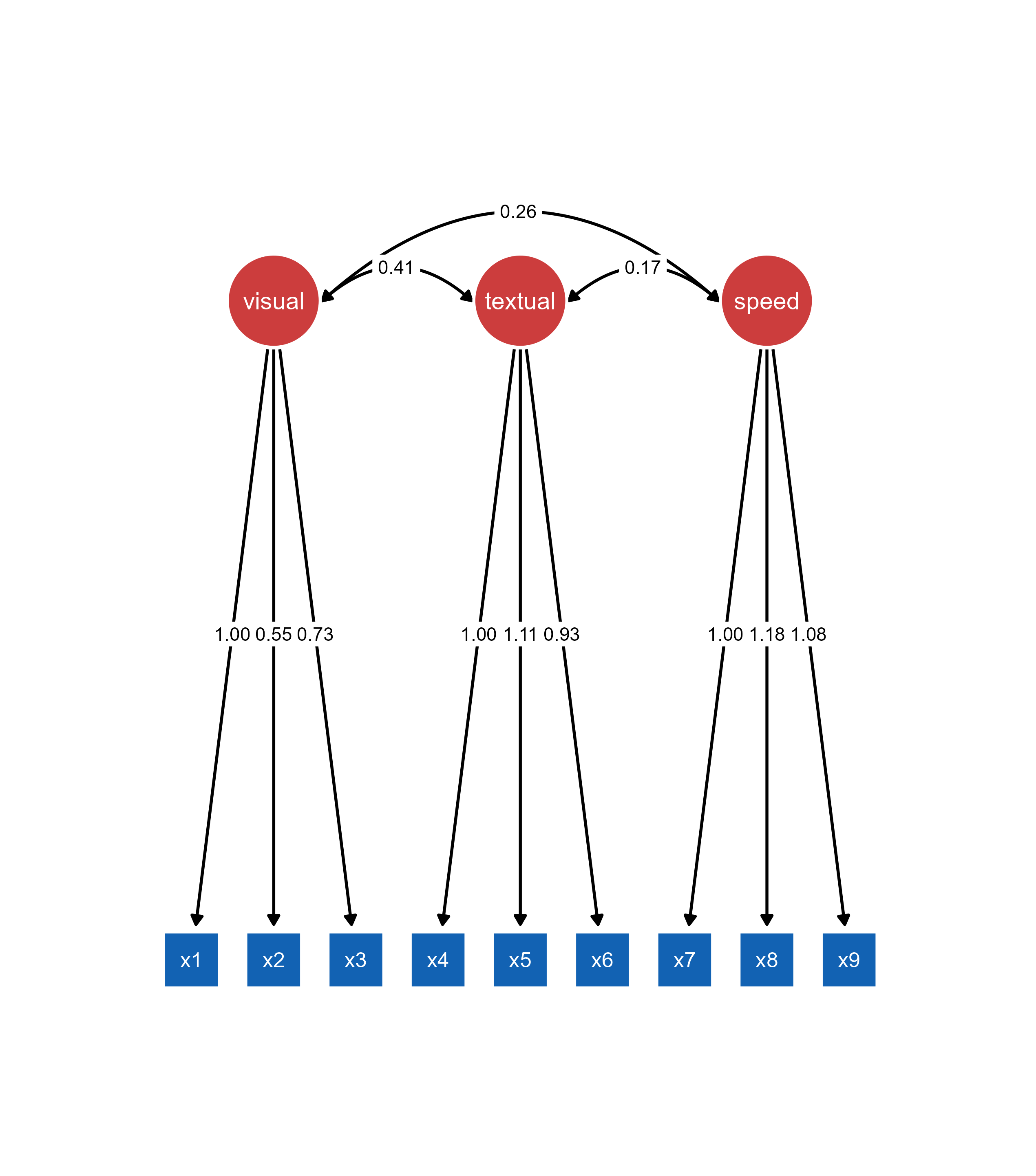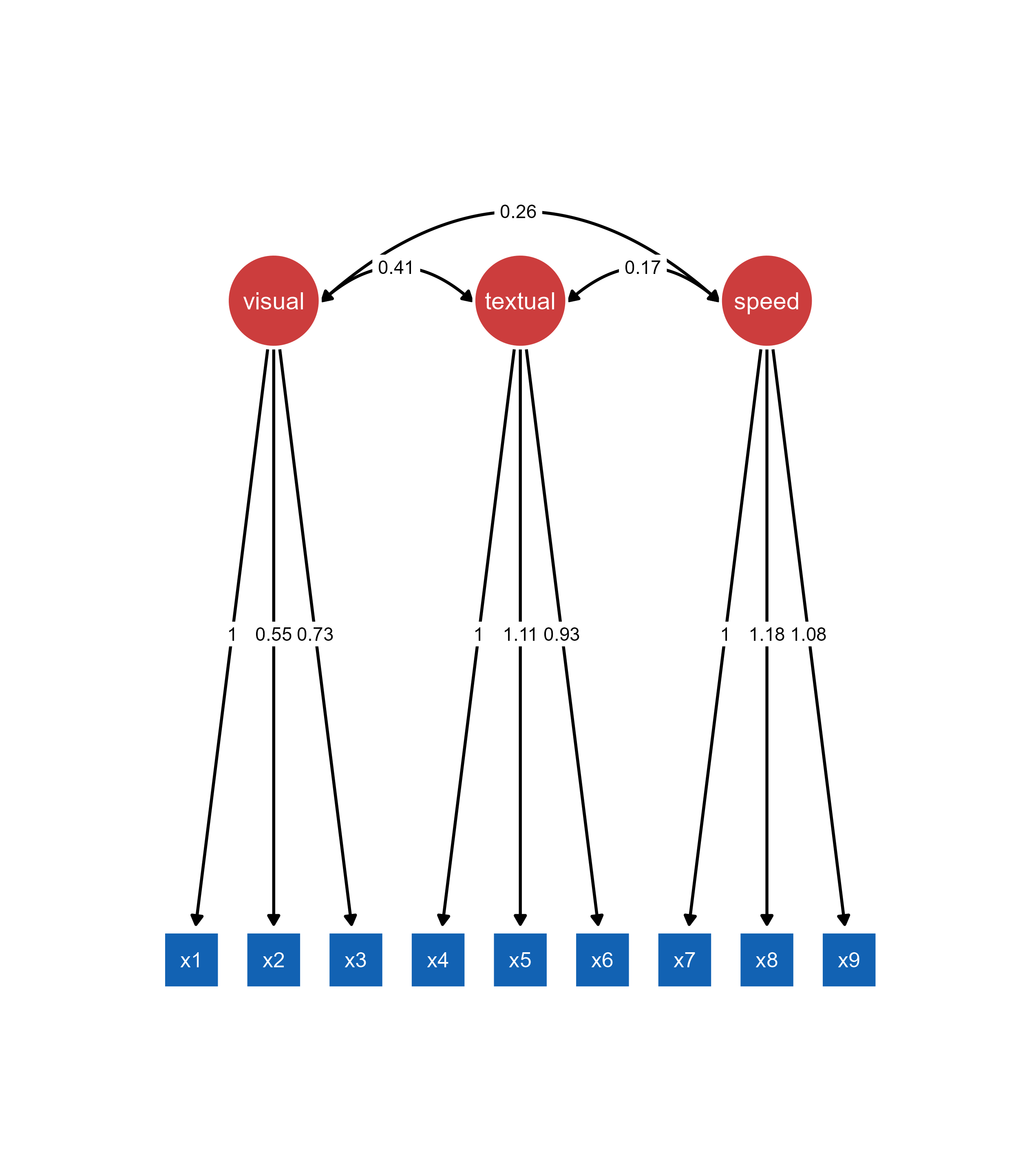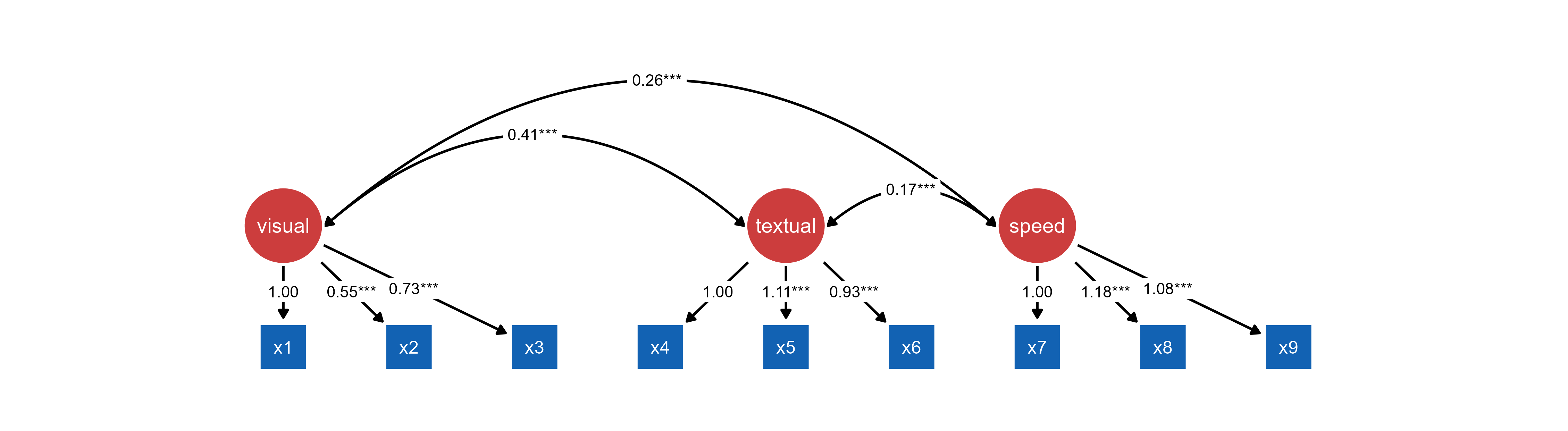 semPlot object.Now, we modify the layout using functions from the semptools package.